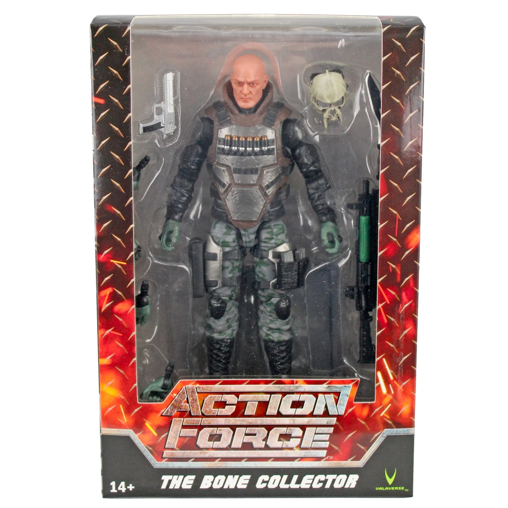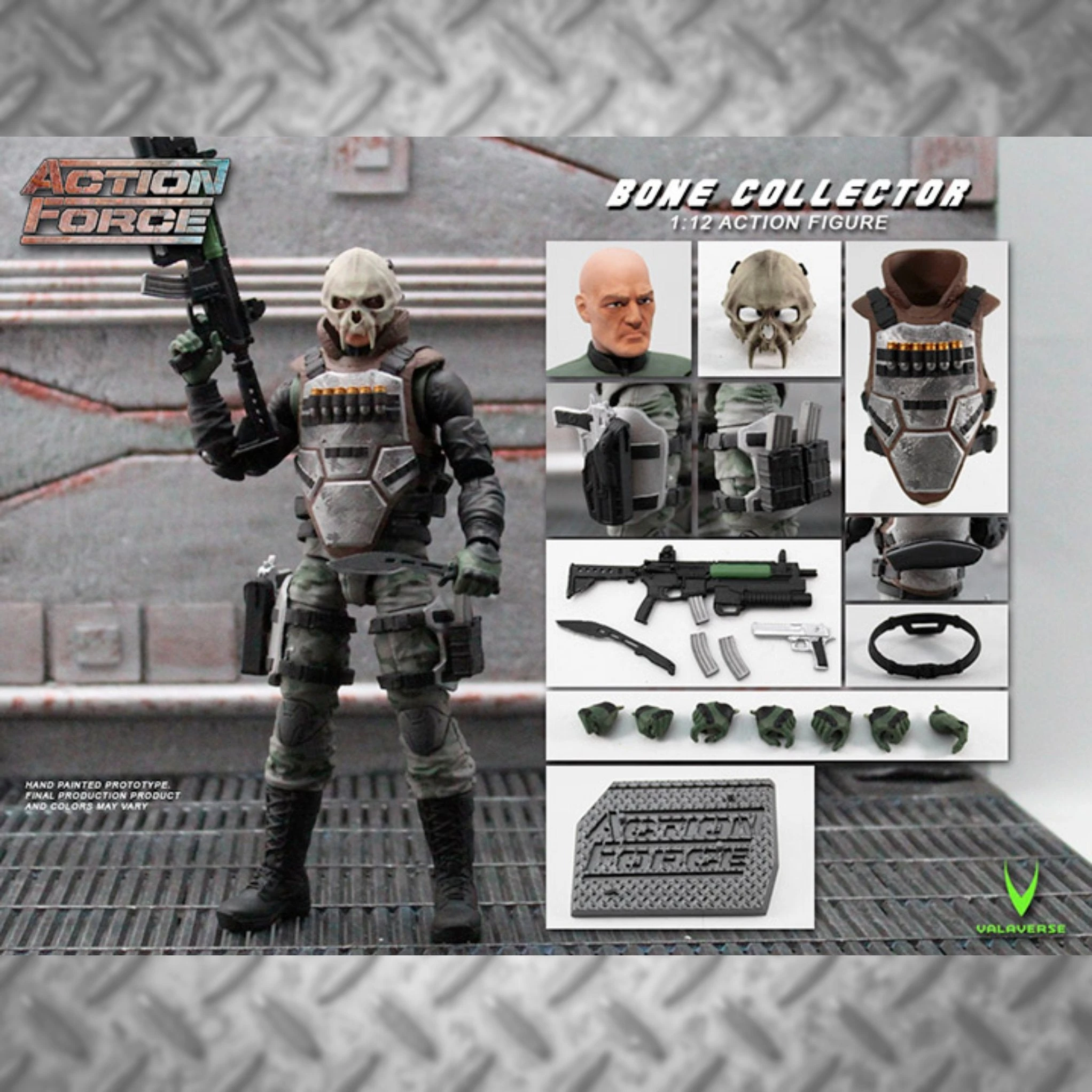 Valaverse is excited to introduce Bone Collector to the premium action figure line, Action Force. The Bone Collector figure features 36 points of articulation, is loaded with accessories, and includes a display stand.