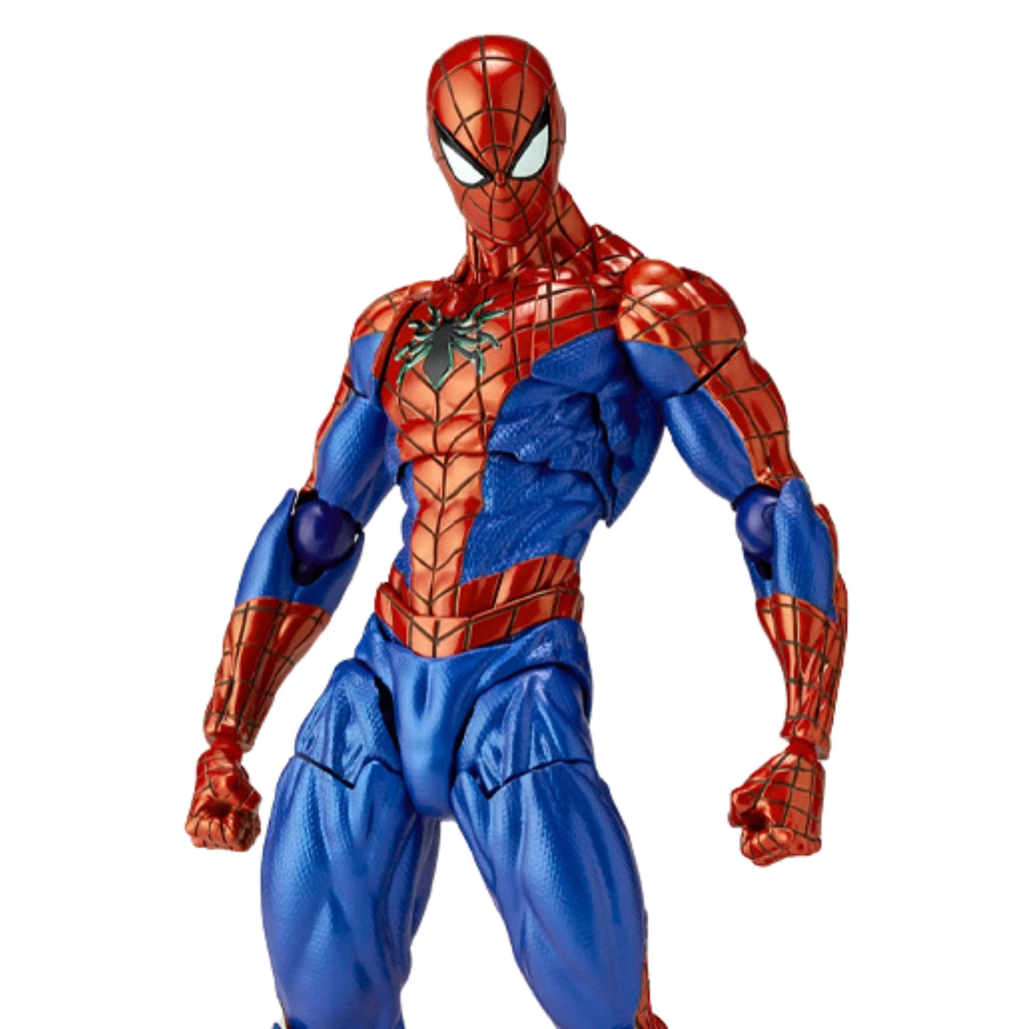 Your friendly neighborhood Spider-Man returns to the “Amazing Yamaguchi” action-figure lineup from Kaiyodo — newly modeled and with more advanced posability! A more evolved system of jointing makes this Spidey figure more expressive and playable than ever before, with 26 points of articulation! By moving both sides of the torso, the shoulder blades can be moved back and forth, and additional joints are included on his shins to recreate the bending effect so often seen in the comics. Although he’s still slender, his muscles are expressed with more edgy details, and the texture of the high-tech material his suit is made from is highlighted with metallic paint for a more realistic atmosphere.