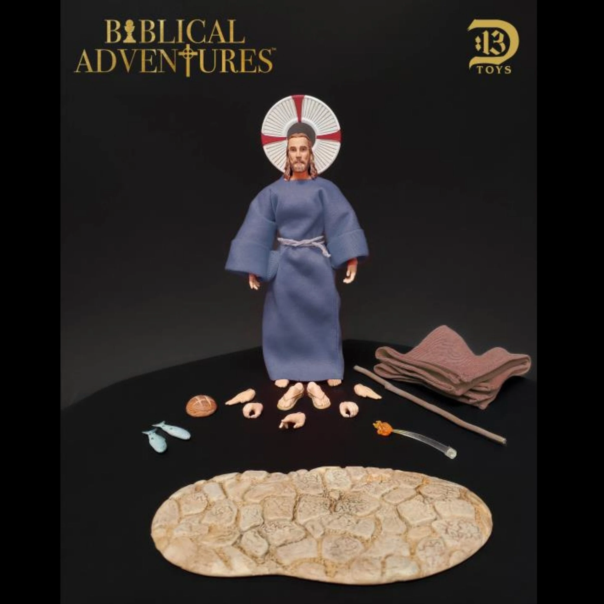 Biblical Adventures is a fully detailed and educational action figure line from D13Toys, bringing well known characters from the Bible to classrooms, religious institutions, and toy collections worldwide! Each figure is fully posable with 31 points of articulation, realistic details, fabric robes, and a variety of accessories. Each figure will also come in a hardcover package replicating a Bible, with a short biography in English, Spanish, and Hebrew, as well as a specific scripture relevant to the individual character written on faux parchment paper.