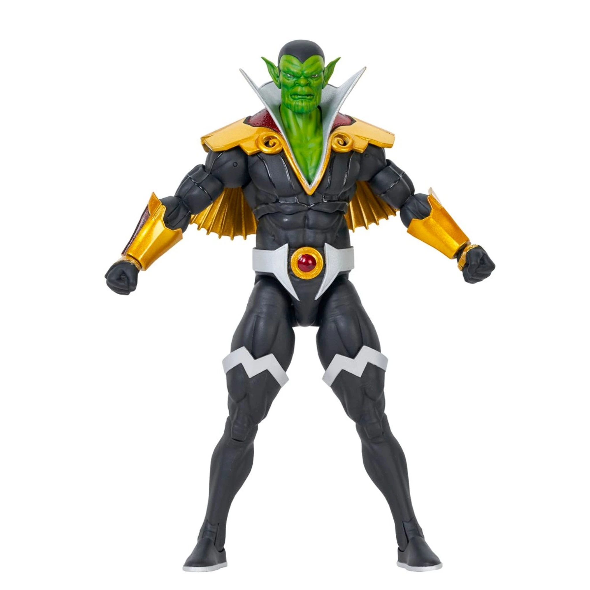 Illuminati beware! Your ranks have been infiltrated by the Skrulls, and this Super Skrull has the powers of all of the Illuminati combined! As seen in the Secret Invasion comic, this Marvel Select Secret Invasion Super Skrull Action Figure comes featured in Illuminati-inspired outfit, and includes an interchangeable masked head, as well as interchangeable hands and a devastating Black Bolt sonic attack piece!
