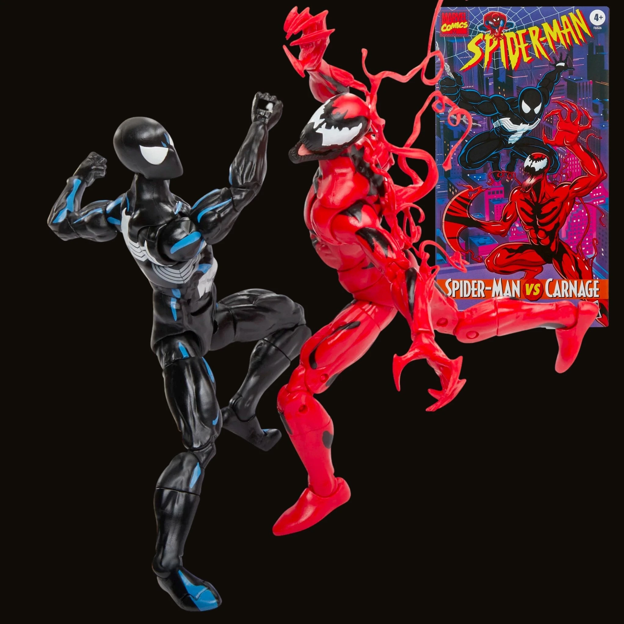 These collectible 6-inch-scale Marvel Legends figures are detailed to look like the Spider-Man Symbiote & Carnage characters from the 1994 Spider-Man: The Animated Series cartoon, featuring premium detail, multiple points of articulation, and 7 series-inspired accessories.