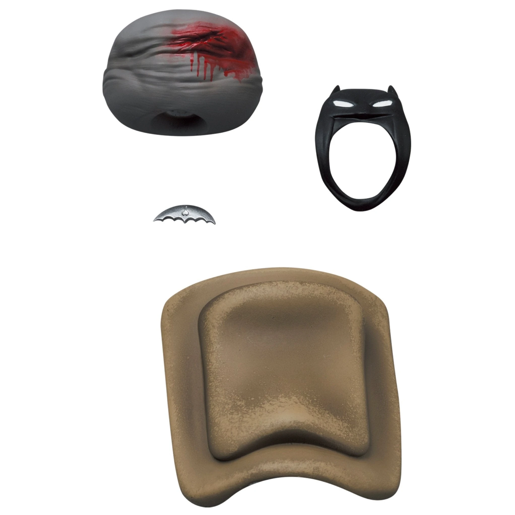 - Includes: Batman figure with alternate face sculpt, bloody torso piece, alternate mask piece, Batarang piece as well as the horse with saddle piece.
