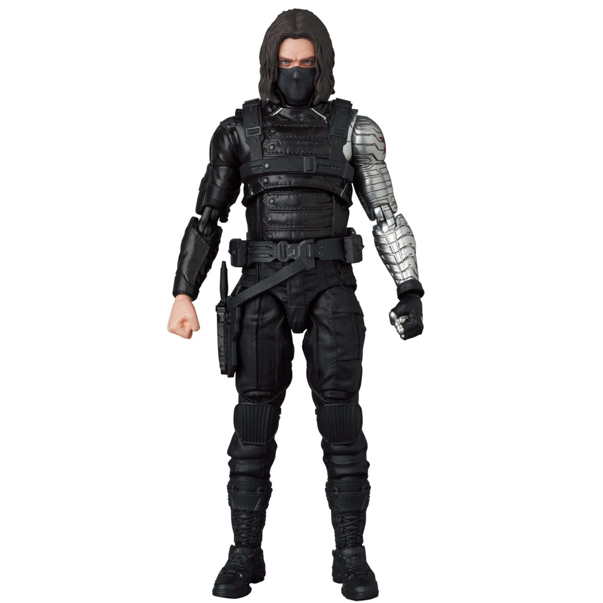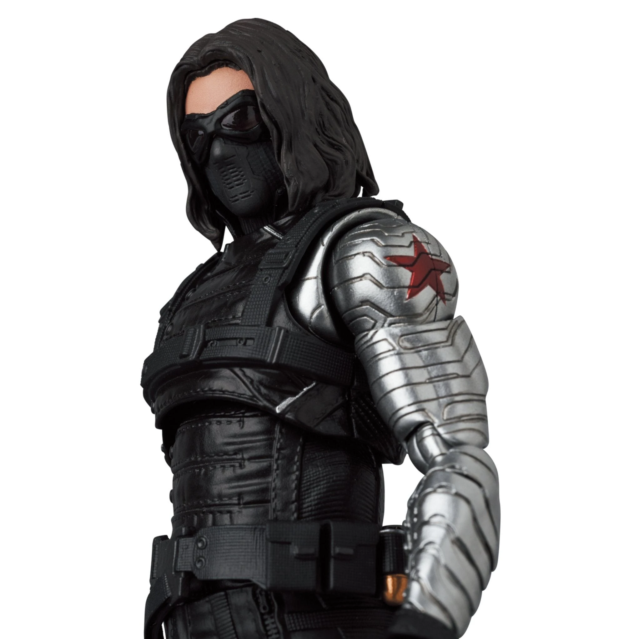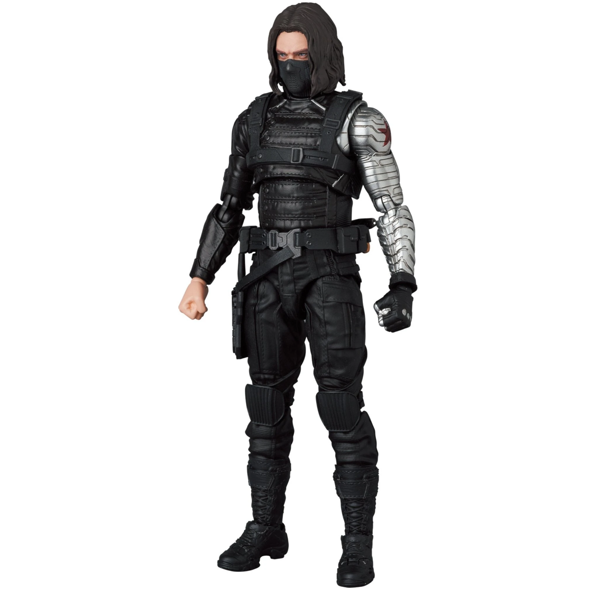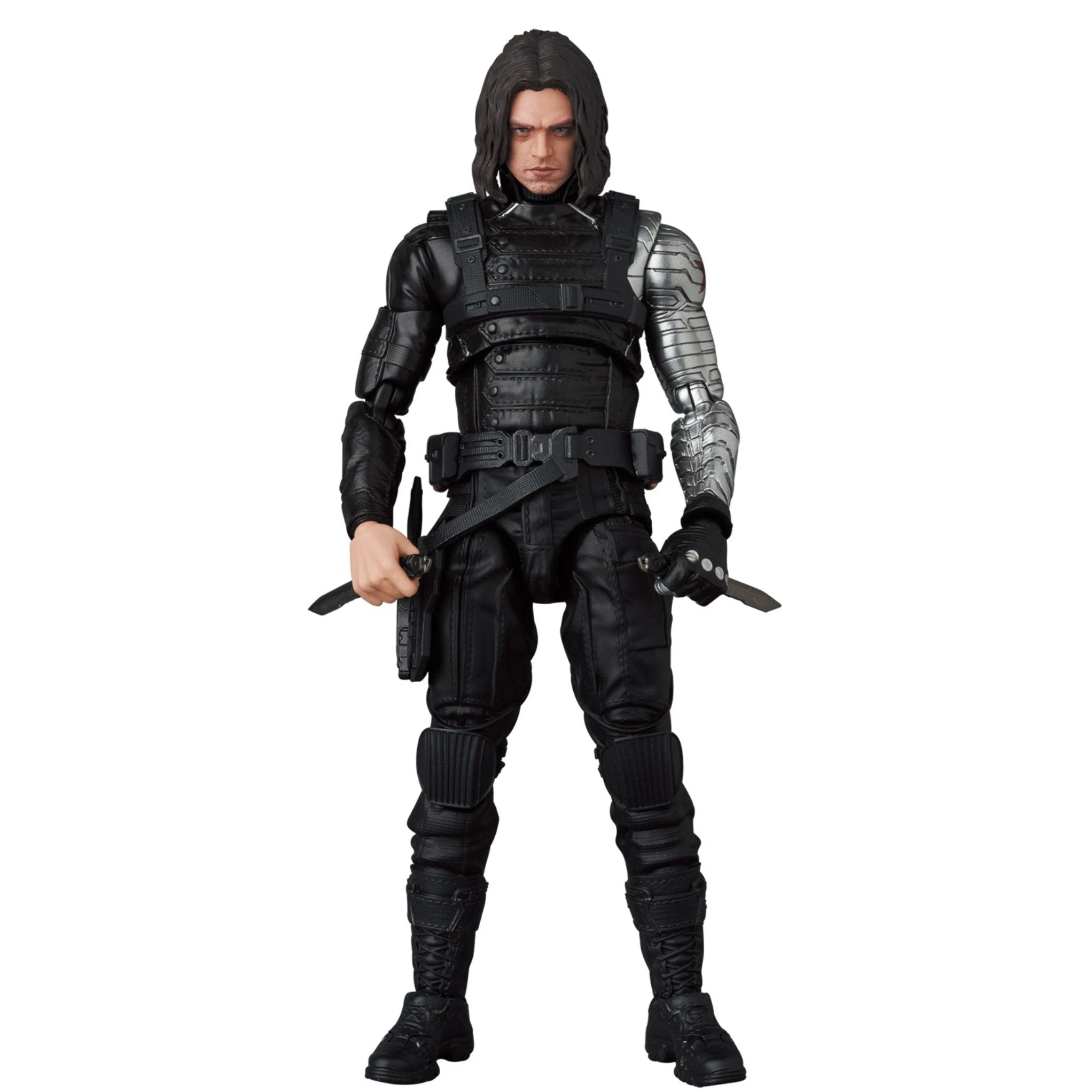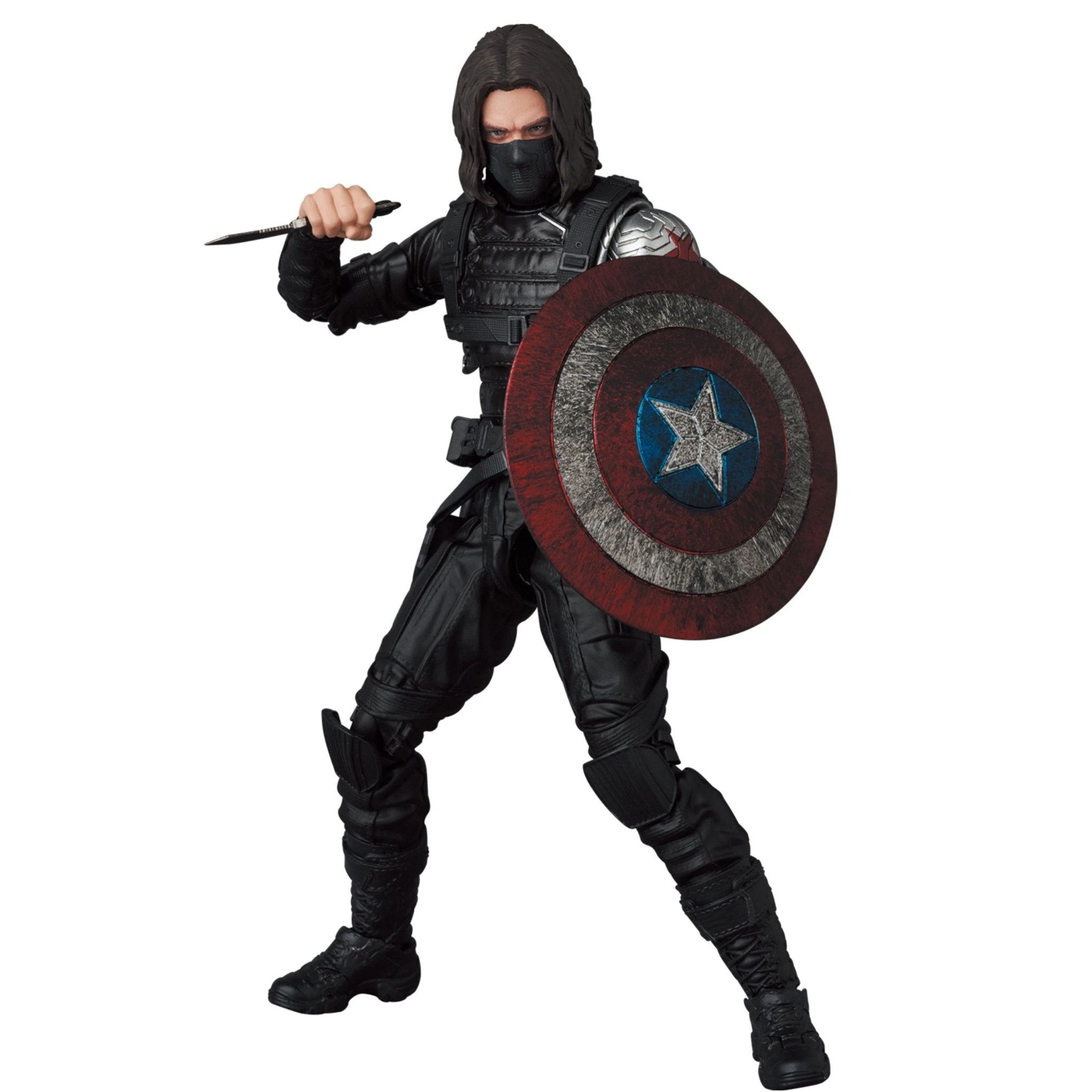 From “Captain America: The Winter Soldier” comes a MAFEX action figure of Bucky Barnes, aka the Winter Soldier! He comes with three different head parts to display him with his mask on or off, along with a shield and several knives for close hand combat. A posable figure stand is also included. Be sure to get the Winter Soldier’s very first MAFEX release for your collection!