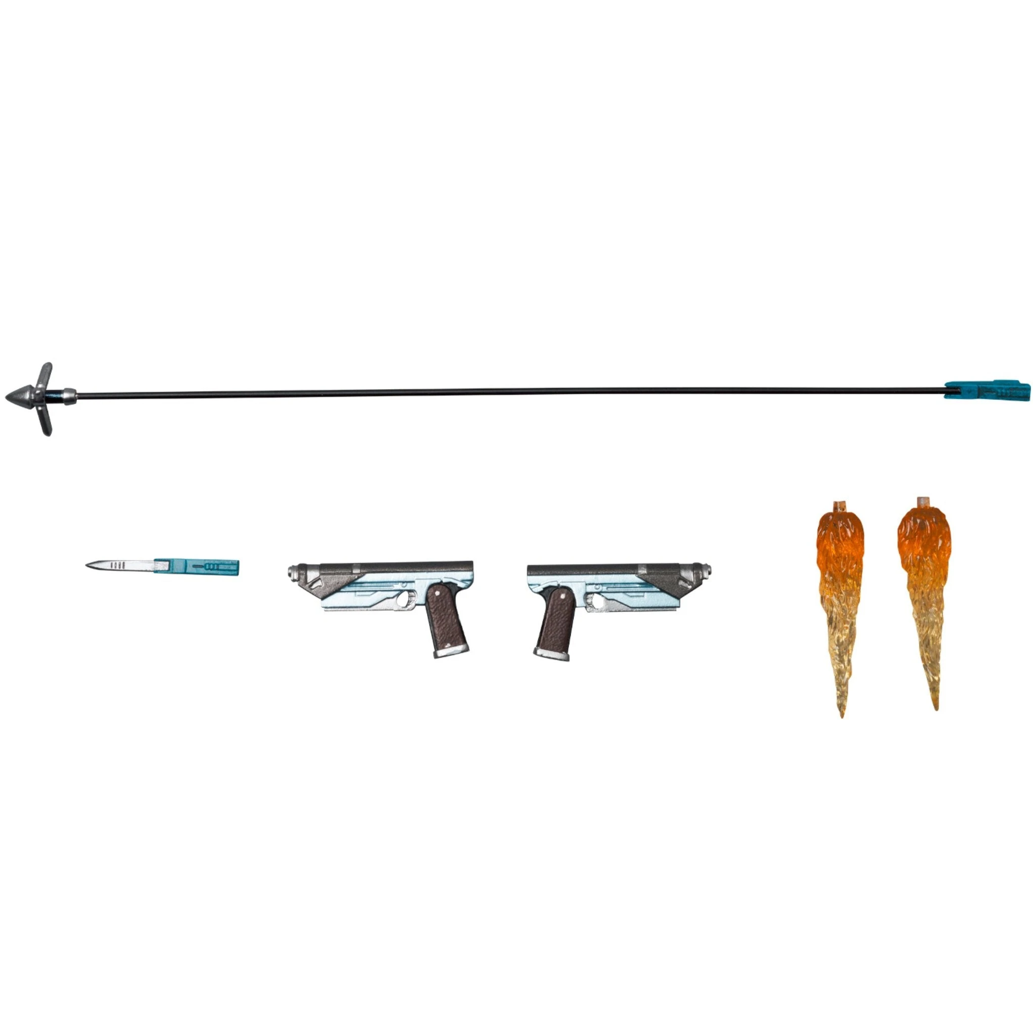 Two types of head parts are included so you can display her with or without her helmet. She comes with two blaster pistols, as well as parts to reveal her Gauntlet Blade in normal state or whip cord firing state. She measures about 150mm tall and includes a posable stand for easy display.