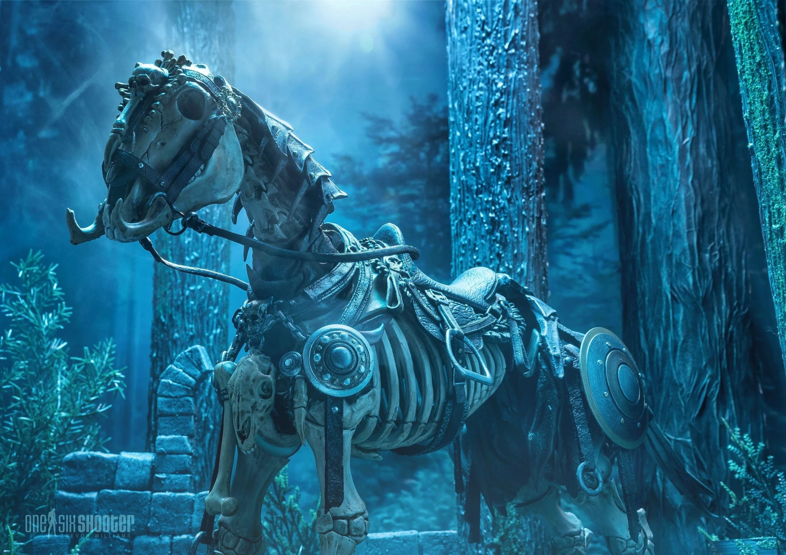 The skeletal steed of Necronominus, Conabus is every bit the vision of horror that his master is. It is said that the clopping of Conabus’s hooves awakens the dead, and then the touch of his master’s relic weapon, the Godrazor, brings them back from the peace of the grave and makes them a soldier in his undead army. Once risen, they form up like supplicants behind the Lord of Death, moving in unison with the clopping of his pale horse.