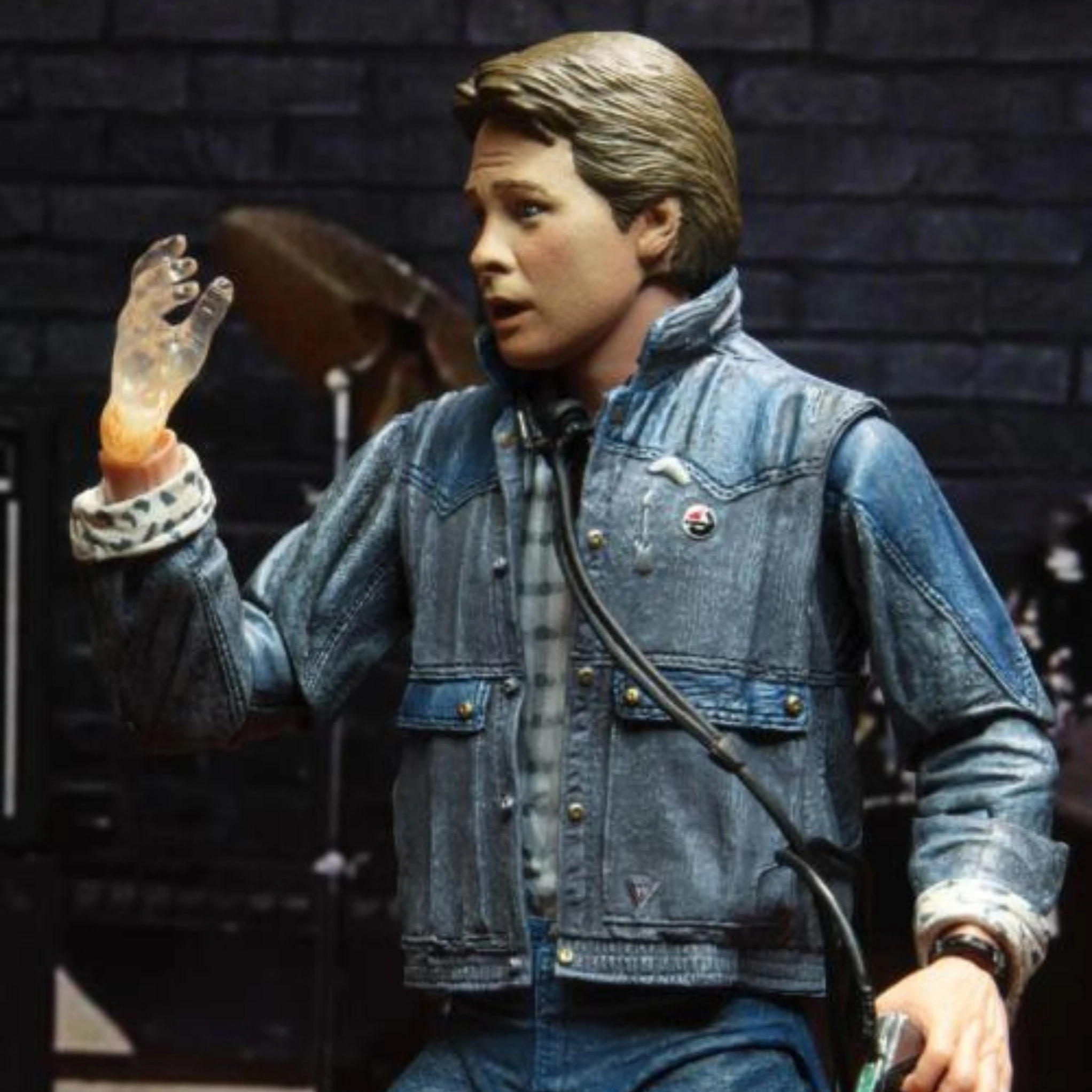 Audition Marty comes with an all-new jacket sculpt without the vest. He is also equipped with brand new accessories, including an audition guitar, a fading hand, a cassette player, and a McFly family photo.