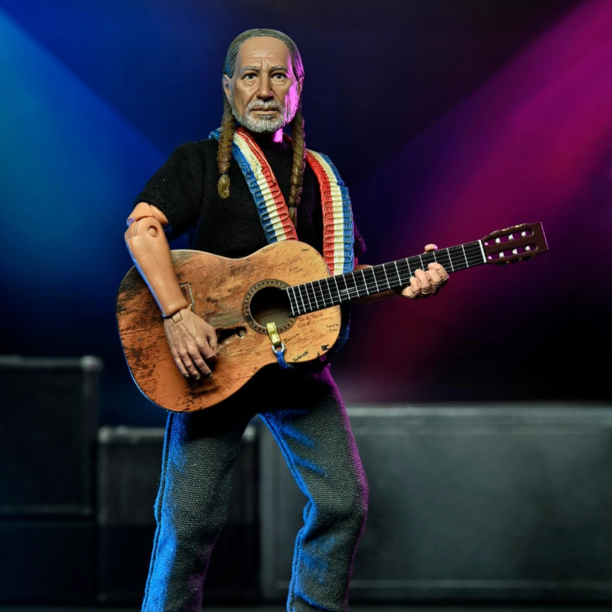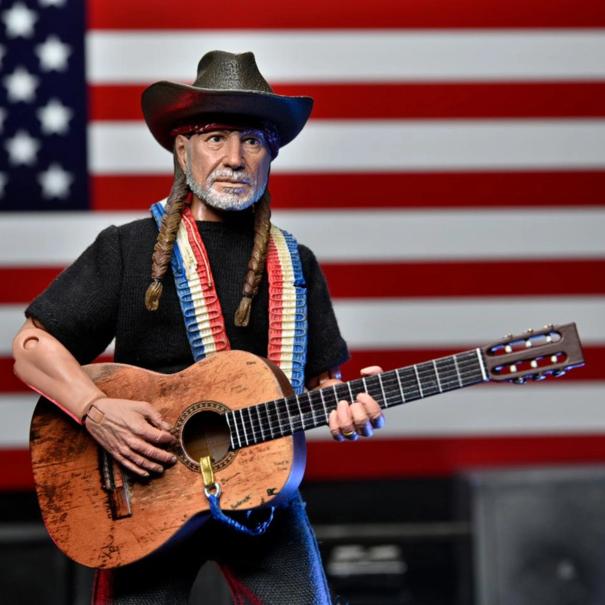 This clothed action figure of American icon Willie Nelson comes with “Trigger” guitar with strap, bandana, cowboy hat, and guitar-playing hands.