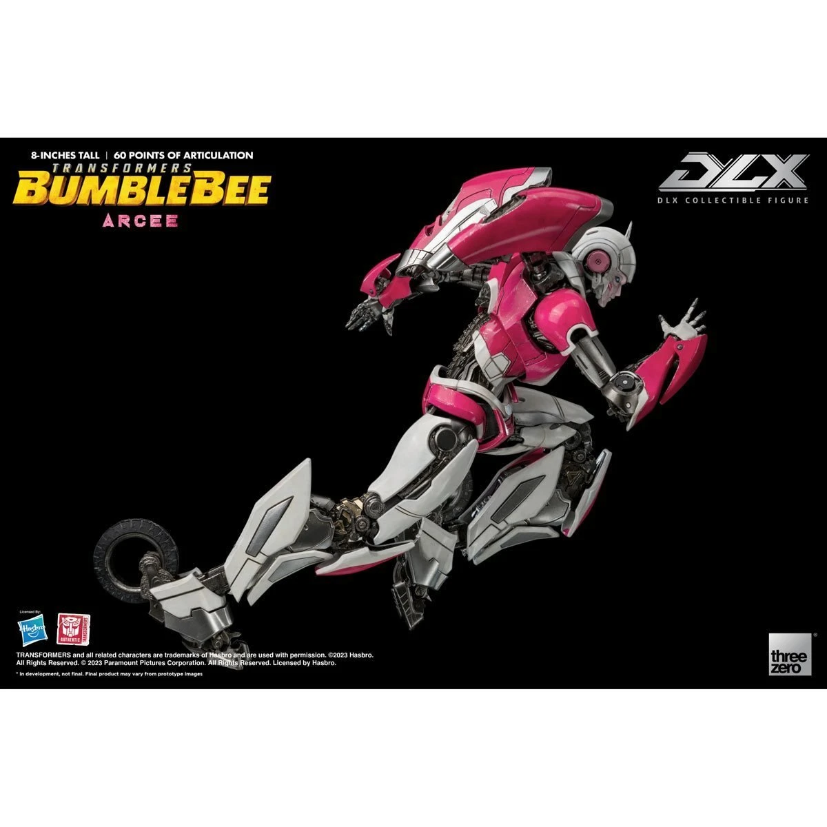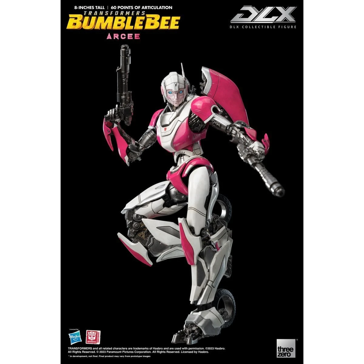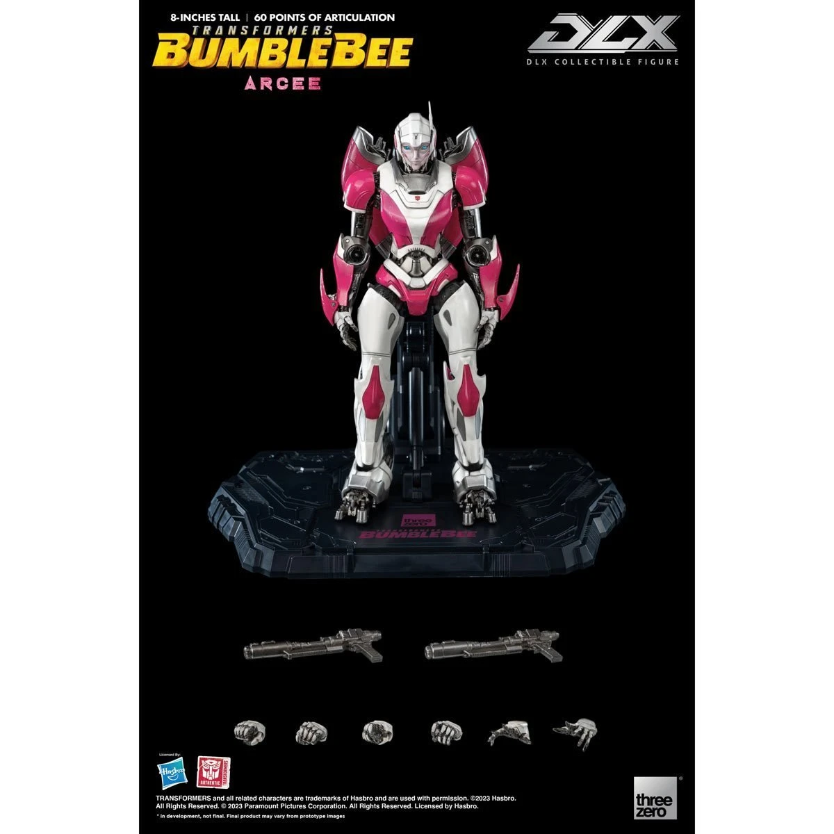 Arcee, the female Autobot from the Transformers: Bumblebee film joins the Transformers DLX collectible action figure series! At 8-inches tall, the Transformers: Bumblebee Arcee DLX Action Figure features approximately 60 points of articulation, a die-cast metal frame, and LED illuminated eyes. Accessories include 2x blasters, 4x pairs of interchangeable hands, and a DLX Action Stand for more dynamic poses.
