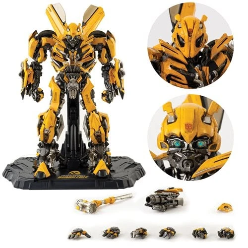 Bumblebee from the 2017 Transformers: The Last Knight movie makes his way into the threezero DLX series. Standing about 8 1/2-inches tall, this collectible Transformers: The Last Knight Bumblebee DLX Action Figure features approximately 60 points of articulation, a die-cast metal frame, and LED illuminated eyes. Accessories include an arm cannon that’s interchangeable with the standard right arm, a Cybertronian hammer, an interchangeable battle mask, detachable wings, four pairs of interchangeable hands, and a DLX action stand for expressive poses. Requires 2x “AG-13” batteries, not included. If you love Bee, you’re gonna love this amazing action figure!